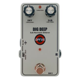 The Dig Deep MK3 is an advanced octave-down pedal designed to transform your guitar sound by generating a rich, monophonic bass line without affecting your upper strings. It’s the perfect tool to add depth and body to a thin guitar sound or to simulate the powerful presence of a bass guitar.
